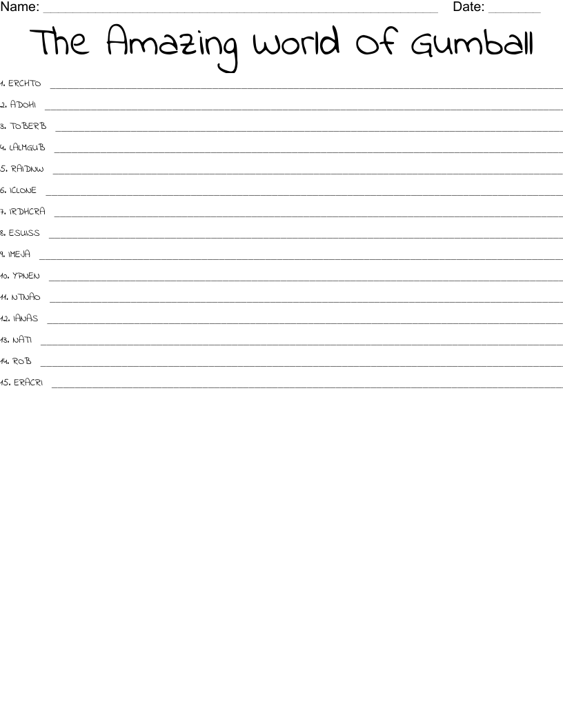 The Amazing World Of Gumball Word Scramble WordMint