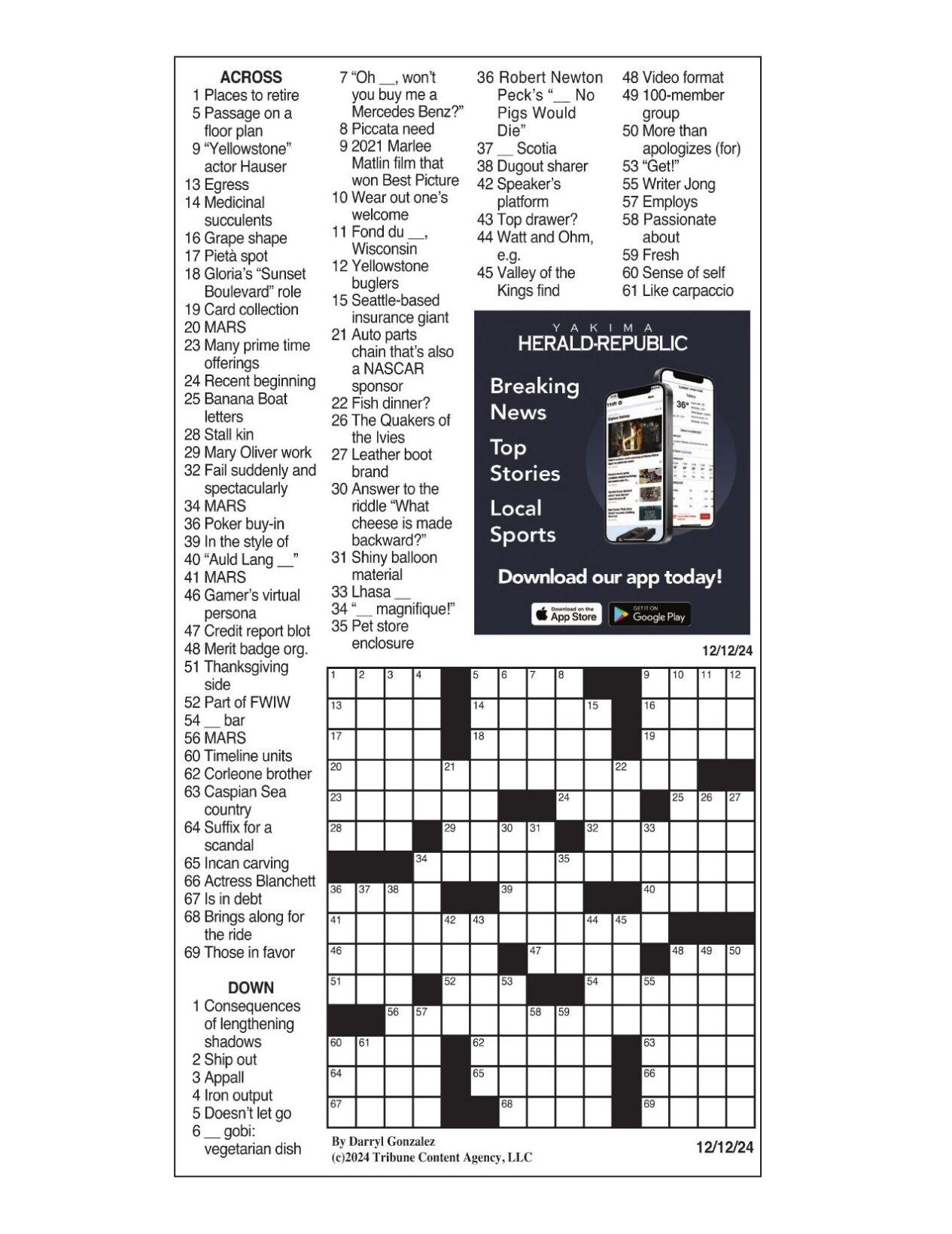 Whether you’re a crossword puzzle pro or just starting out, our December 12 Printable Crossword Puzzle is sure to provide hours of entertainment. Grab a pen or pencil, find a cozy spot, and get ready to put your brain to the test.