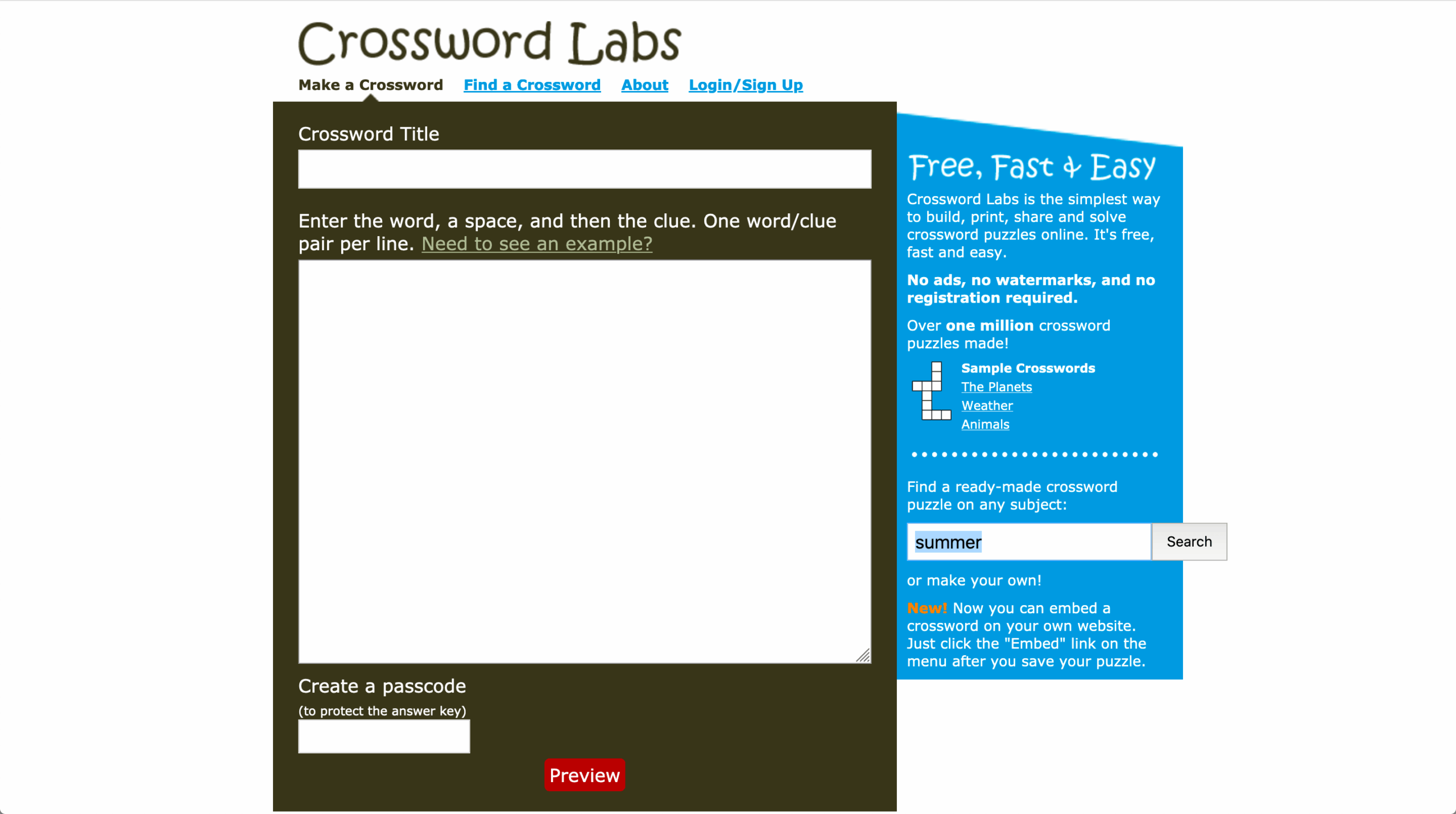 Easy Online Crossword Puzzles Printable