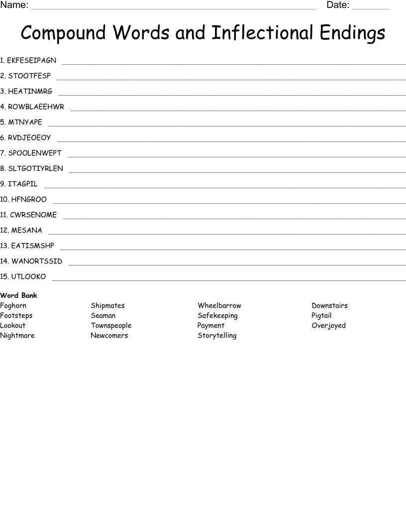 Compound Words And Inflectional Endings Word Scramble WordMint