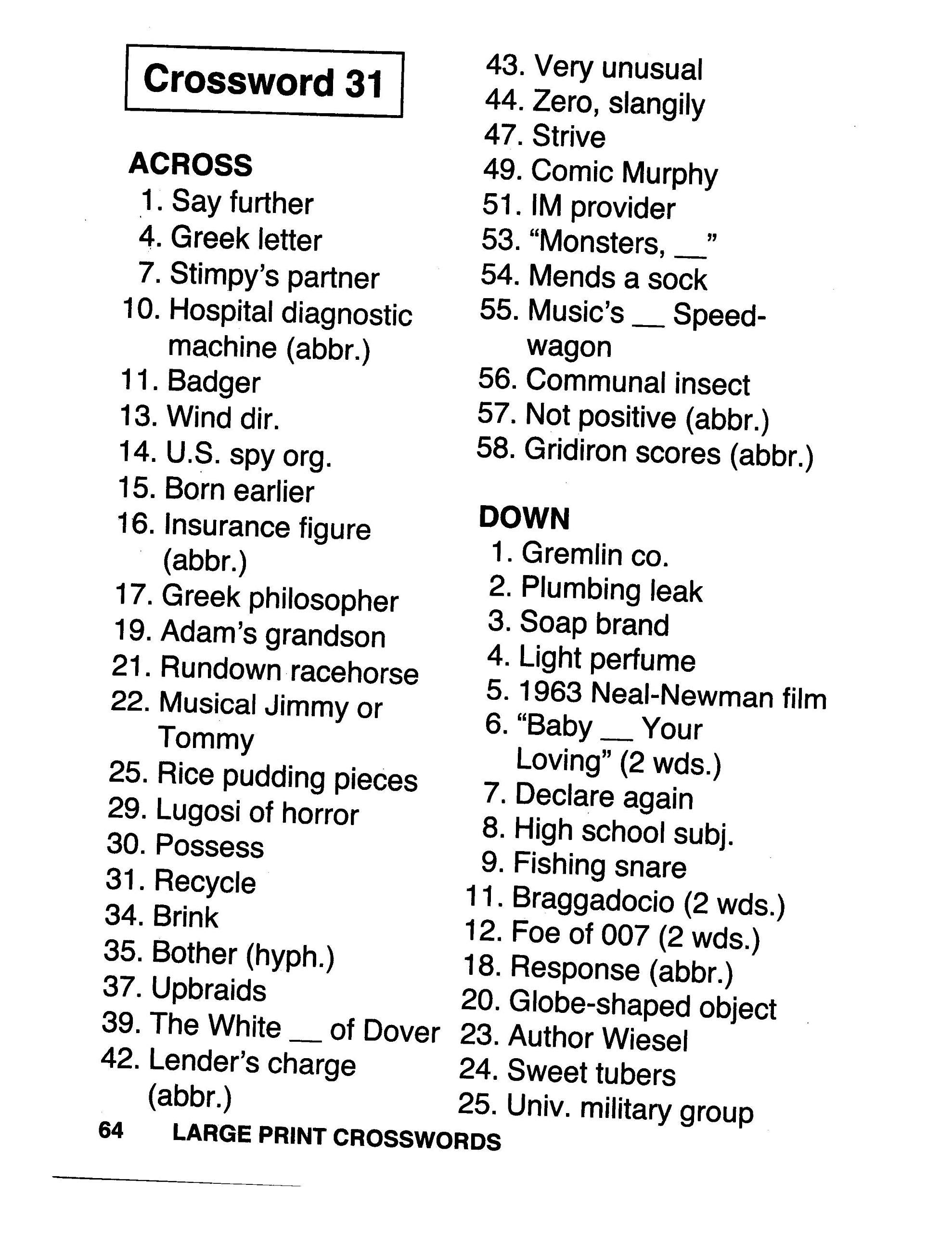 Large Size Crossword Puzzle Printable