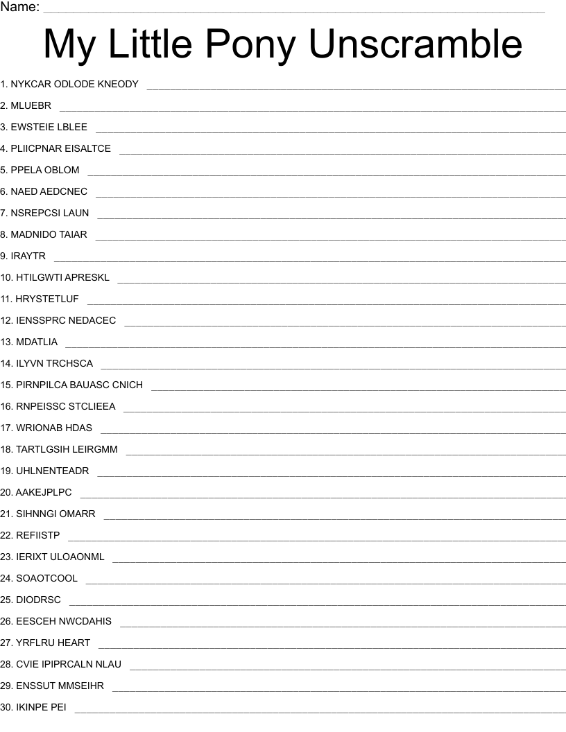 My Little Pony Unscramble WordMint