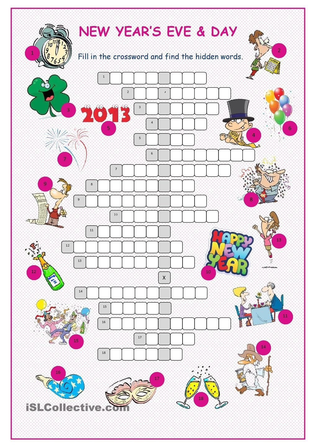 New Year Crossword Puzzle Printable