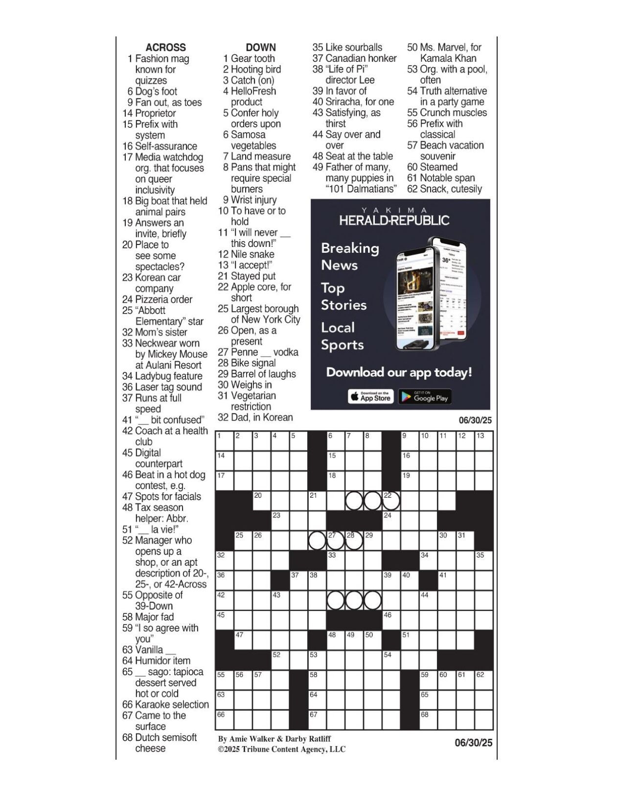 LA Times Crossword June 30 2025 Crosswords Yakimaherald