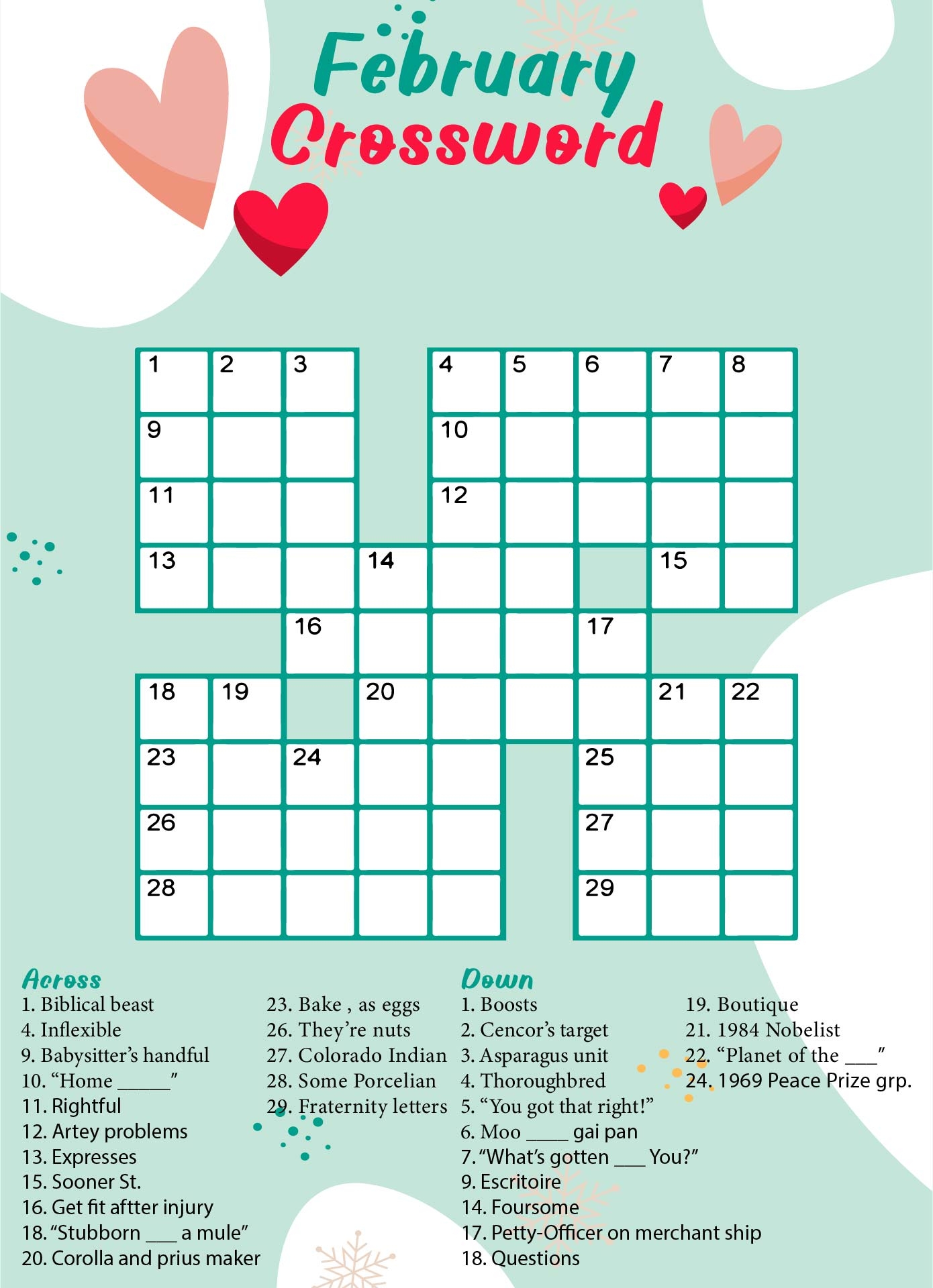 So, why not give a printable crossword puzzle for February a try? You can easily find them online for free or purchase themed puzzle books at your local bookstore. Whether you enjoy solving puzzles solo or with a group, it’s a fantastic way to stay entertained and mentally sharp throughout the month.