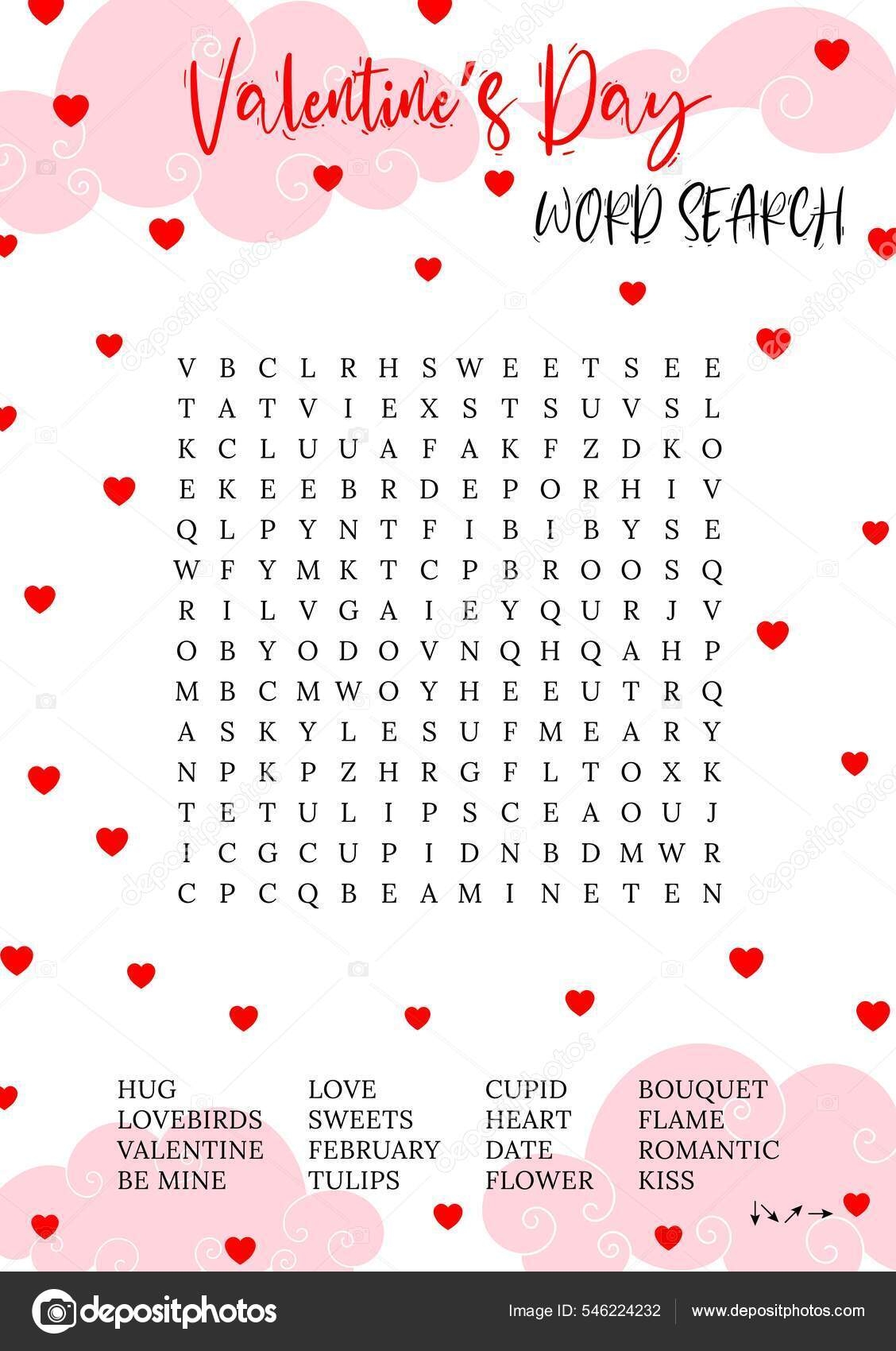 Valentine s Day February Word Search Puzzle Printable Party Card Educational Stock Vector By Nebula47 546224232