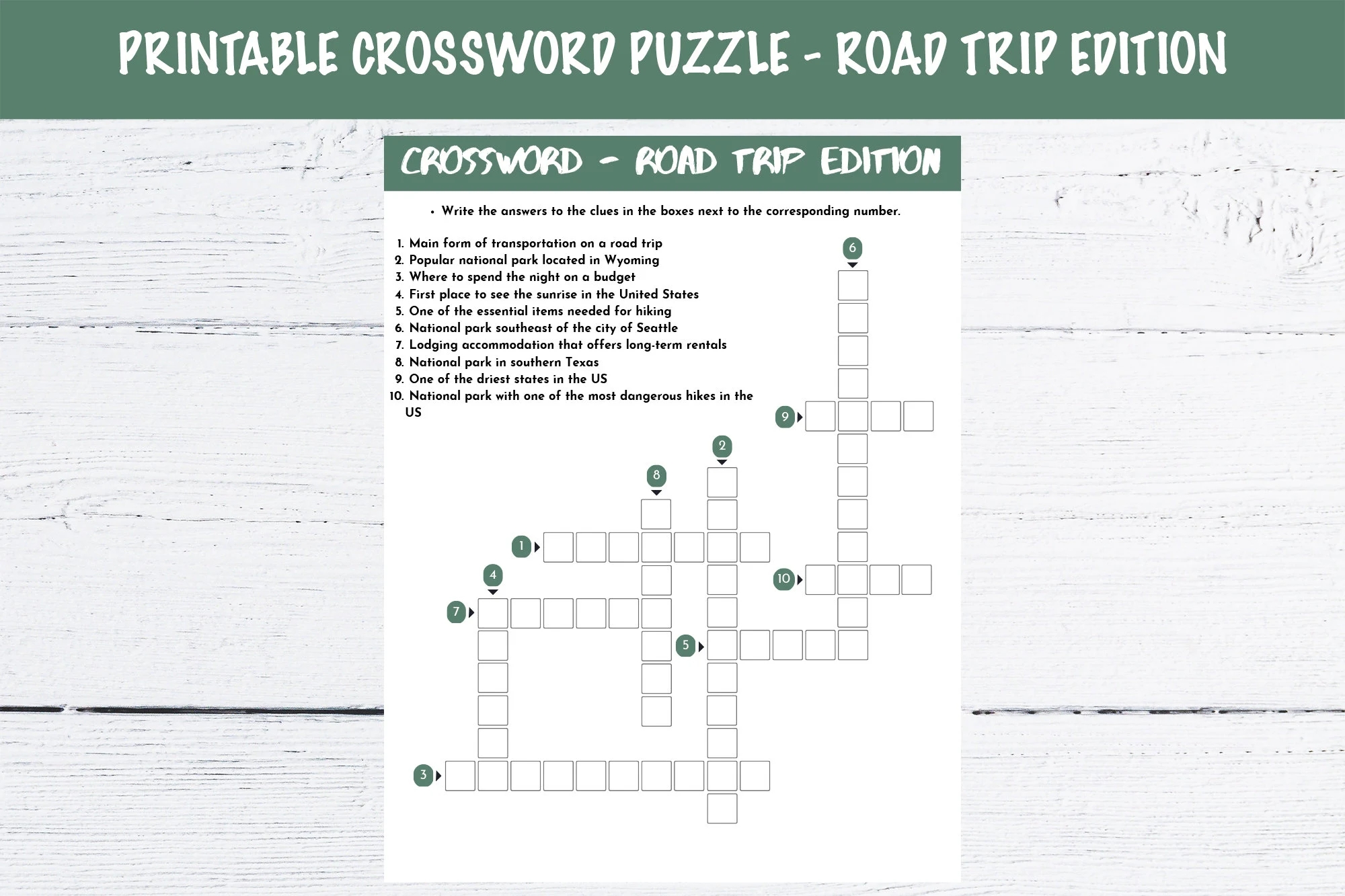 Printable Crossword Puzzle Road Trip Edition Etsy