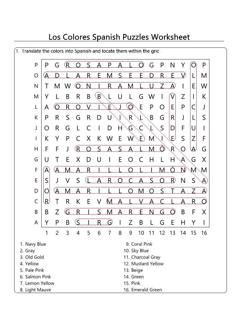 Colors Spanish Word Search Crossword 5 Printable Puzzles PDF Etsy
