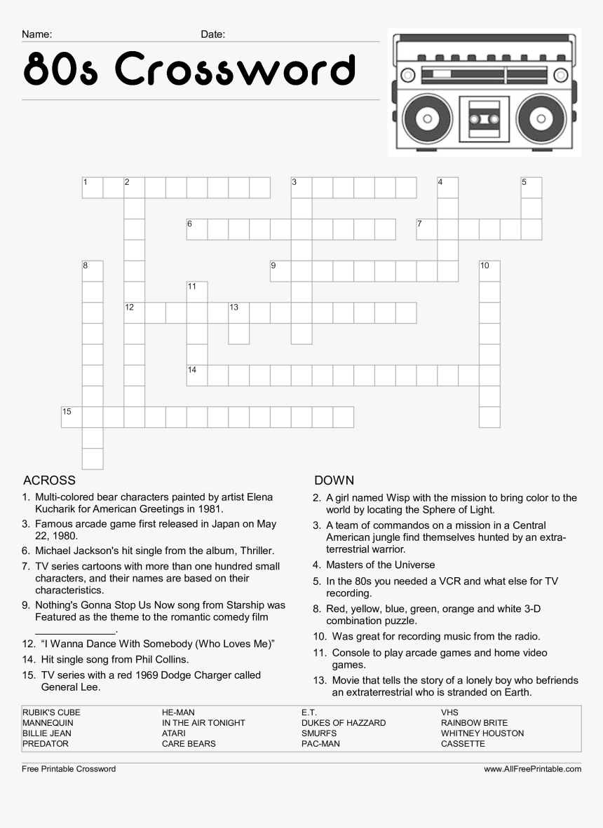 80 S Crossword Puzzle Famous Actors Crossword Puzzle HD Png Download Transparent Png Image PNGitem
