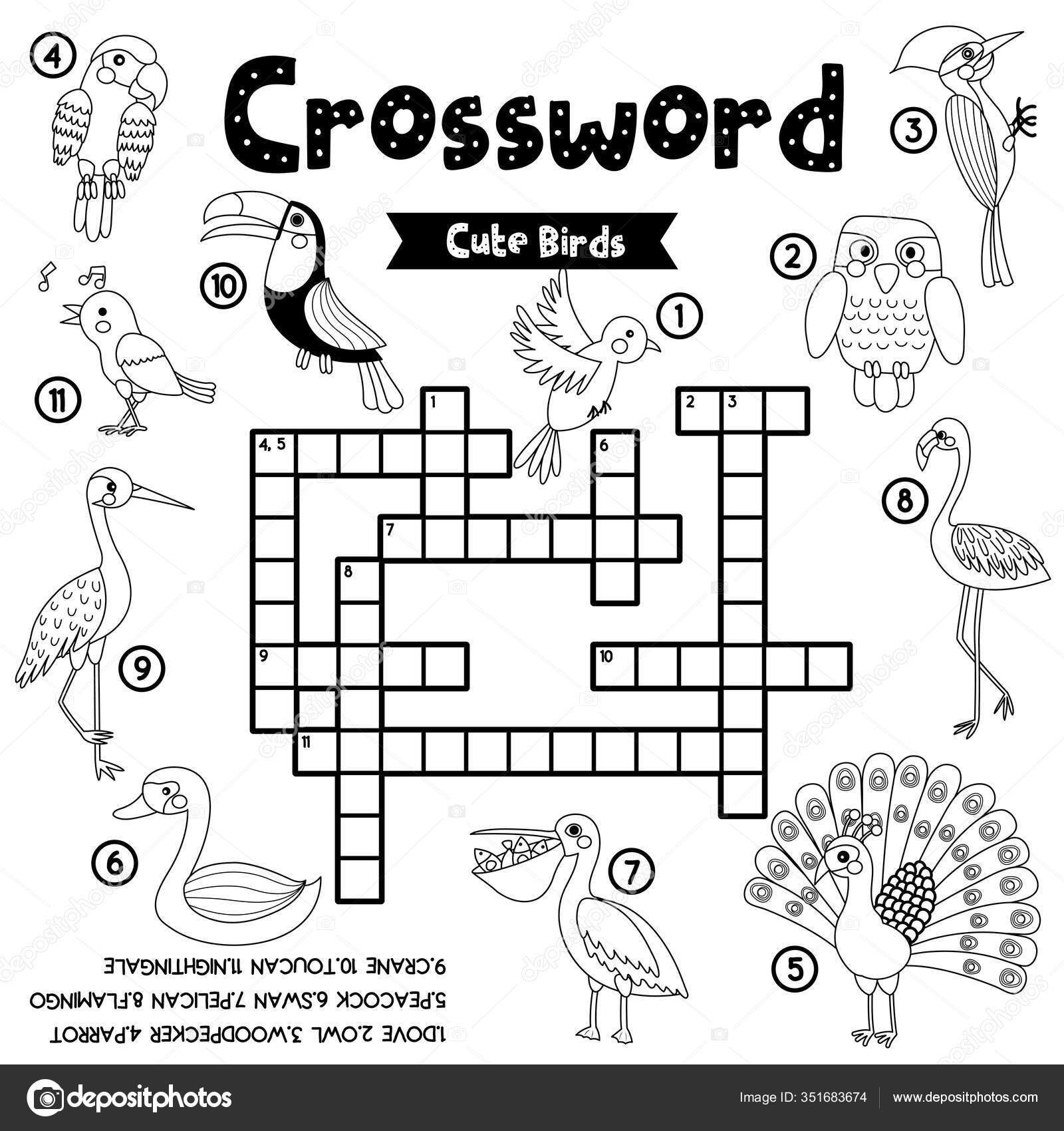 Crosswords Puzzle Game Cute Birds Animals Preschool Kids Activity Worksheet Stock Vector By natchapohn 351683674