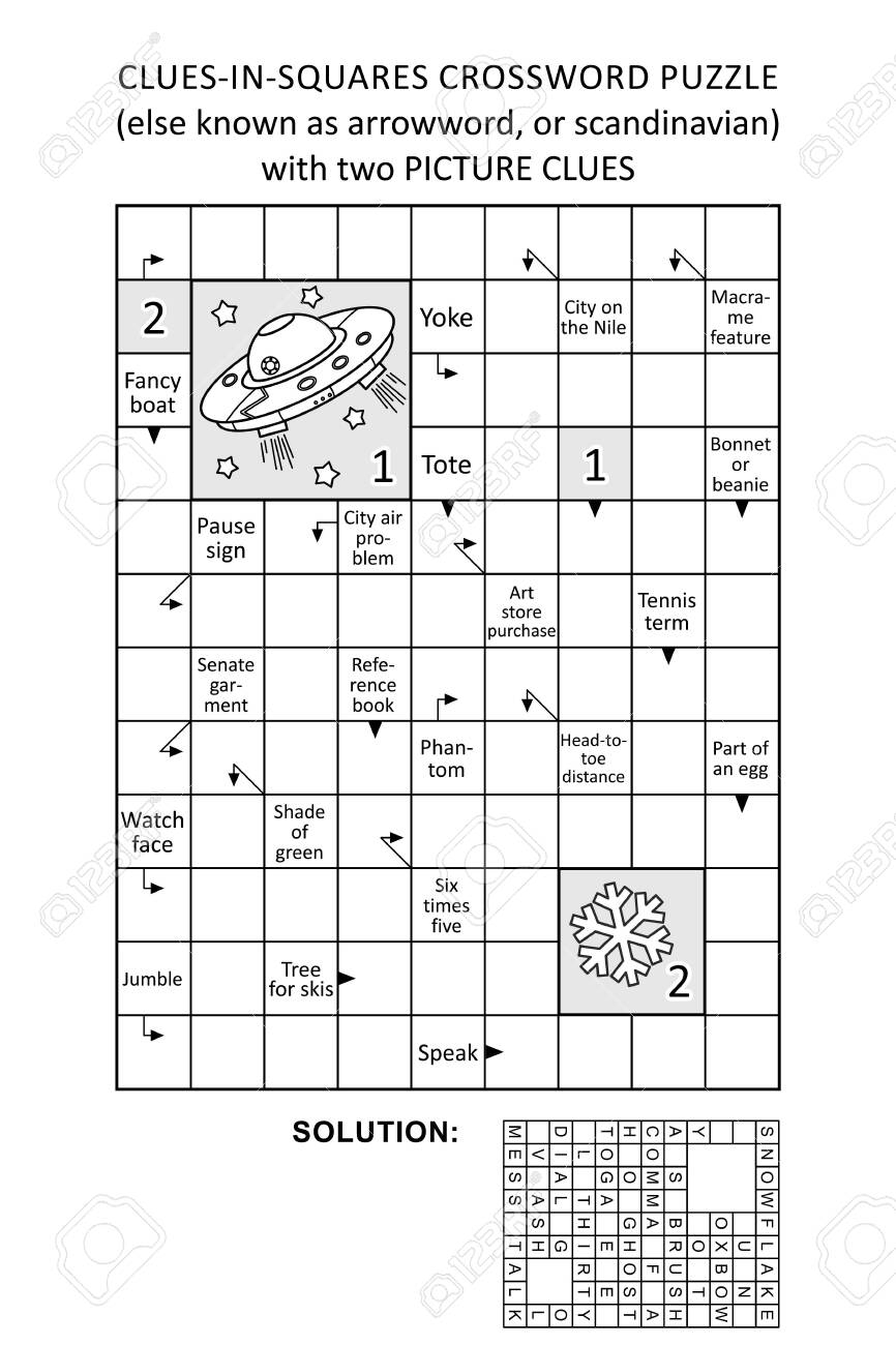Clues in squares Crossword Puzzle Or Arrow Word Puzzle Else Arrowword Scandinavian Or Scanword Skanword With Picture Clues General Knowledge Non themed Family Friendly Solution Included Royalty Free SVG Cliparts Vectors And Stock