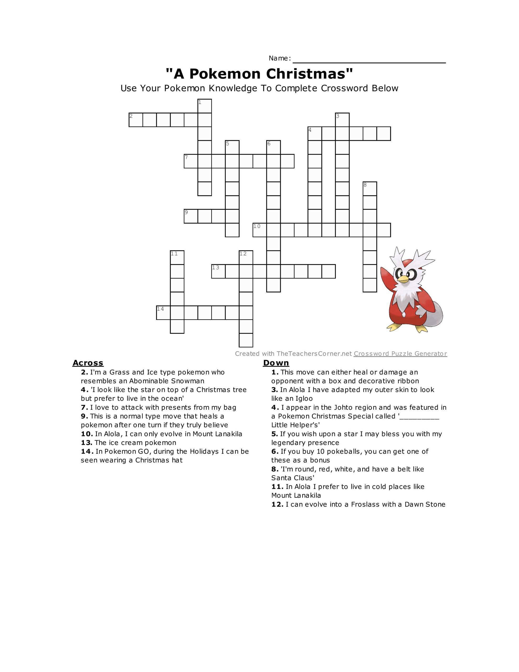 Printable Pokemon Crossword Puzzles