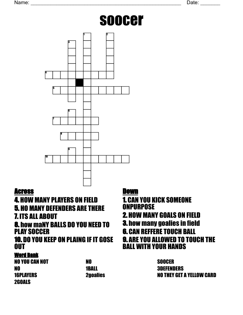 Soocer Crossword WordMint
