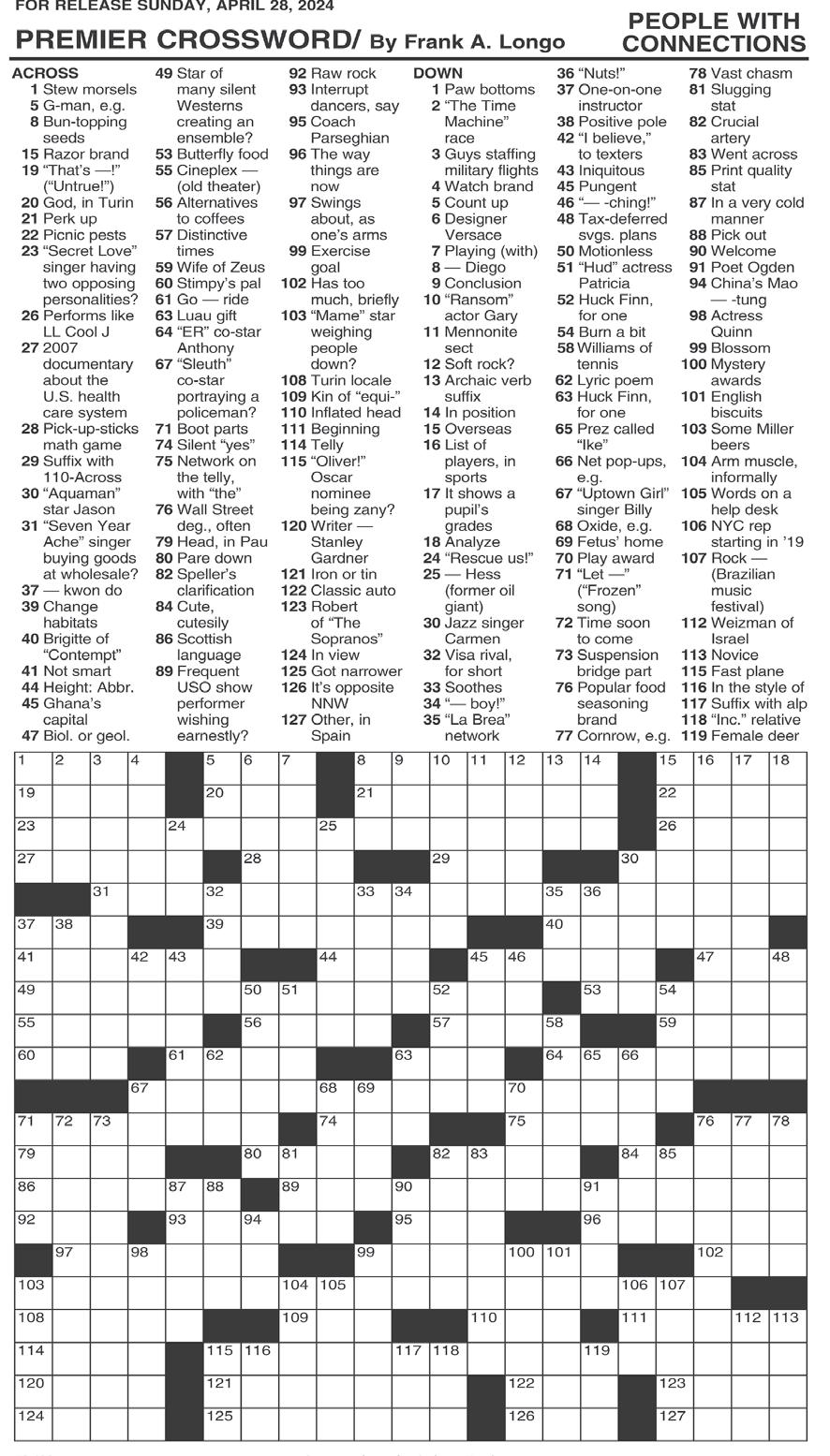 Print out your copy of the Sunday Premier Crossword Printable today and get ready to embark on an exciting crossword-solving adventure. Whether you’re a seasoned pro or a beginner, this puzzle is guaranteed to provide hours of entertainment and enjoyment. Happy solving!