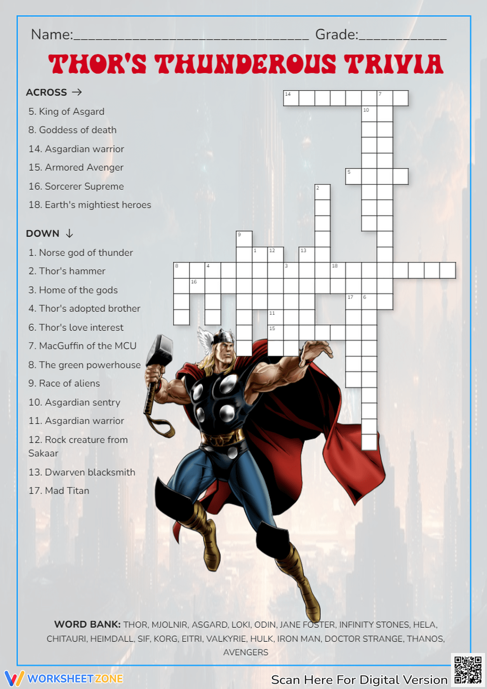 Grade 1 Marvel Crossword Puzzle Worksheets Printable